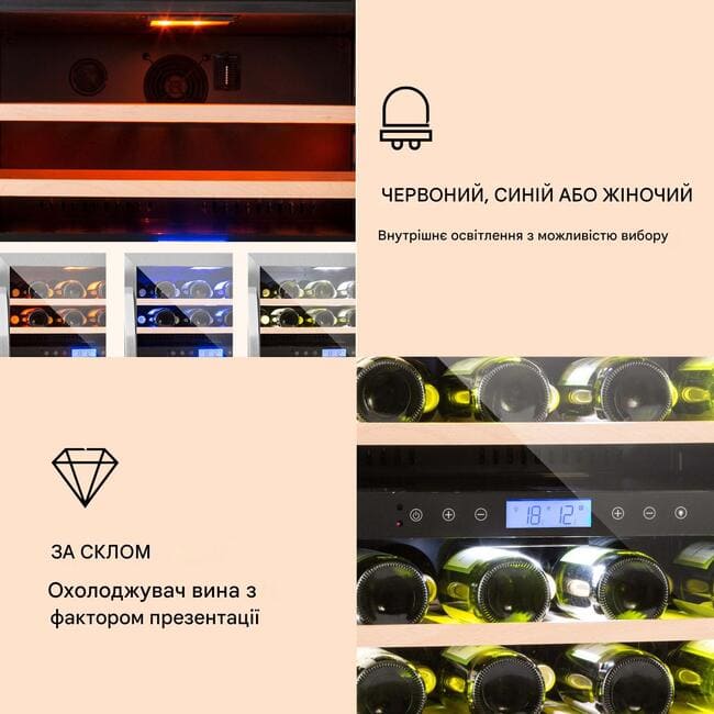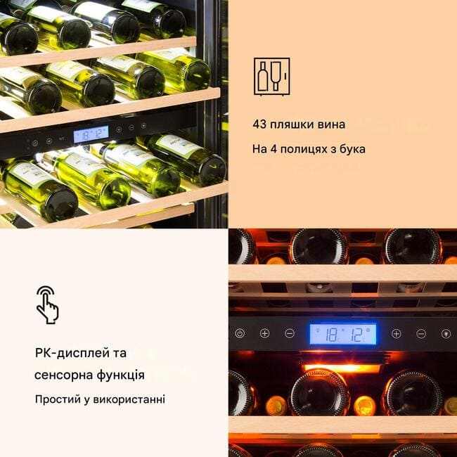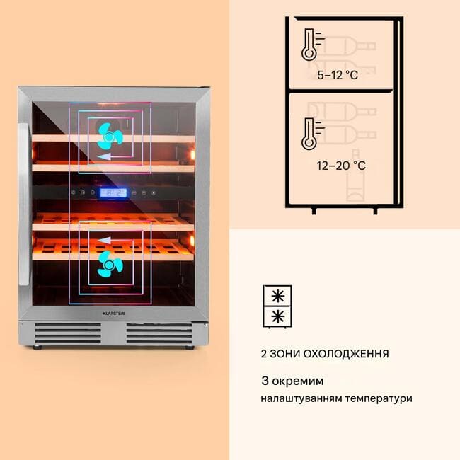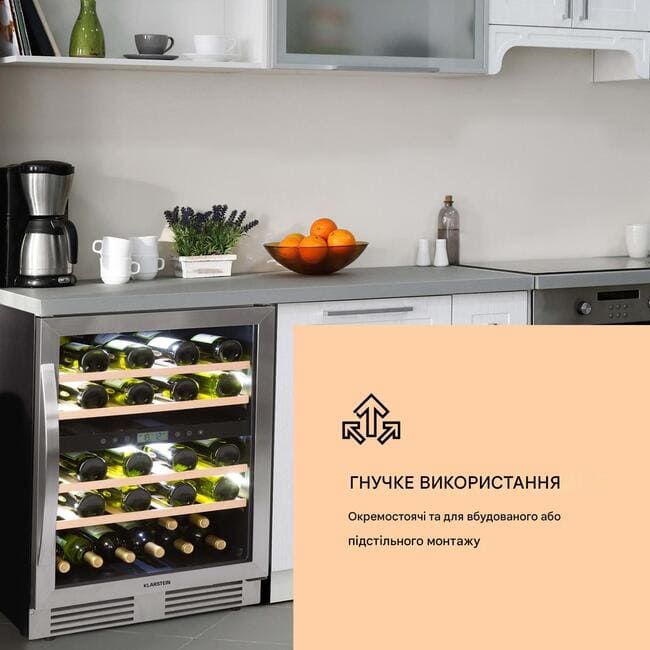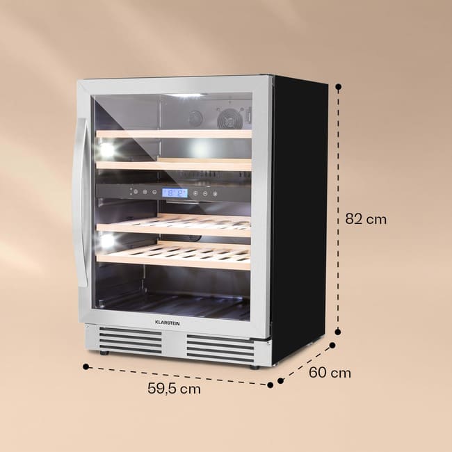 Klarstein Vinovilla Duo 43 - вбудований двозонний винний холодильник, 129 л 43 пляшки.