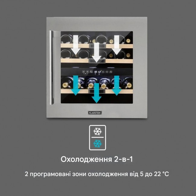 2 зони охолодження: регулюється від 5 до 22 °C