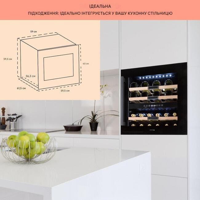 Об'єм 85 літрів: місткий вбудований винний холодильник