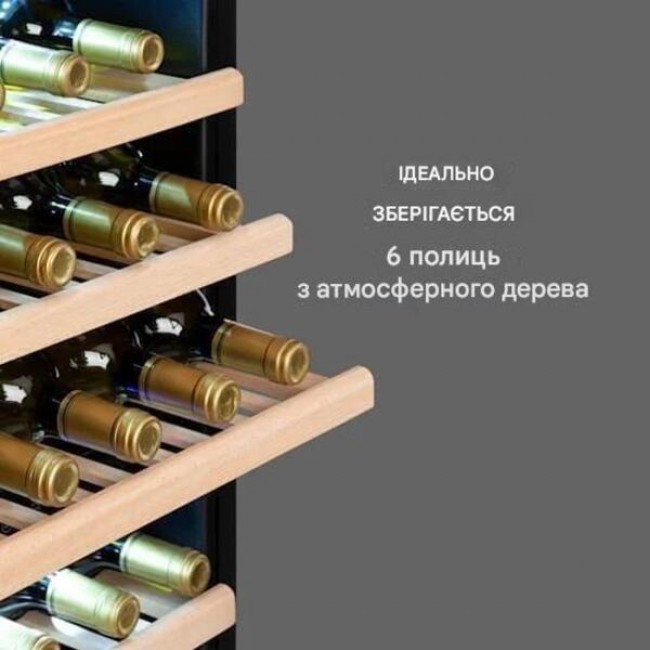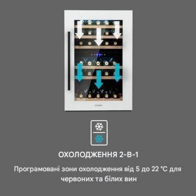 - Охолодження 2-в-1: програмовані зони охолодження від 5 до 22 ° C для червоного та білого вина