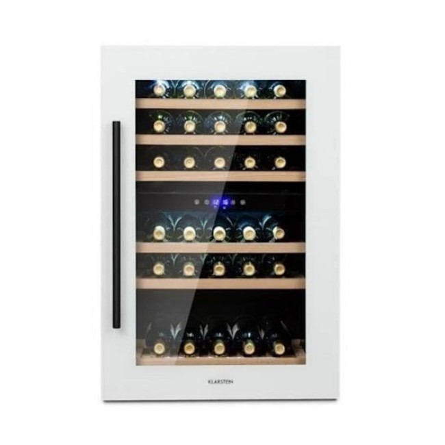 Klarstein Vinsider 41D Вбудований Duo винний холодильник об'ємом 41 літри пропонують кожному вино умови ідеального для досягнення її температур ідеальних питних і розвивати весь свій аромат: просто відкрити елегантні передні двері з дверною коробкою в стильному кришталевому вигляді кварцу і помістіть вино на одну з 3 дерев'яних. Потім оберіть бажану температуру охолодження, і винний холодильник Klarstein подбає про ідеальний винний клімат для гарного самопочуття. Таким чином, вино не тільки добре охолоджується, а й зберігається стильно і правильно.