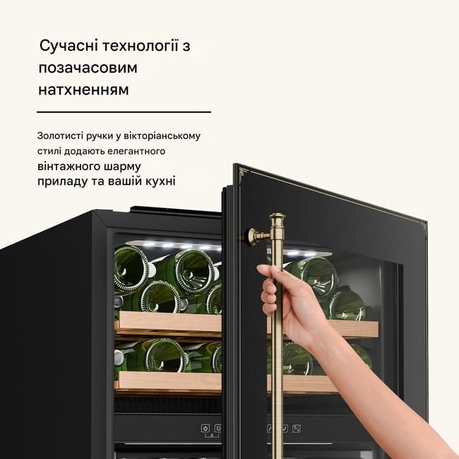 Винний холодильник Klarstein Vinsider Victoria 36 поєднує вінтажний дизайн з оптимальною функціональністю для ідеального зберігання та презентації ваших вин.