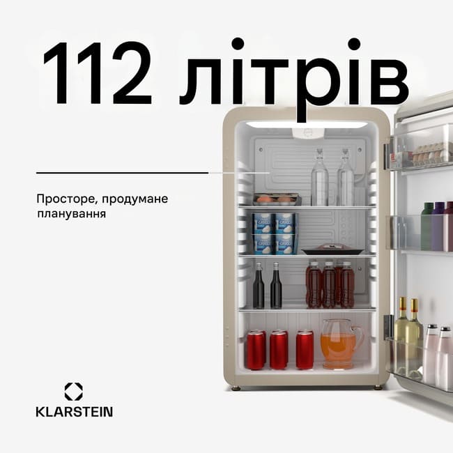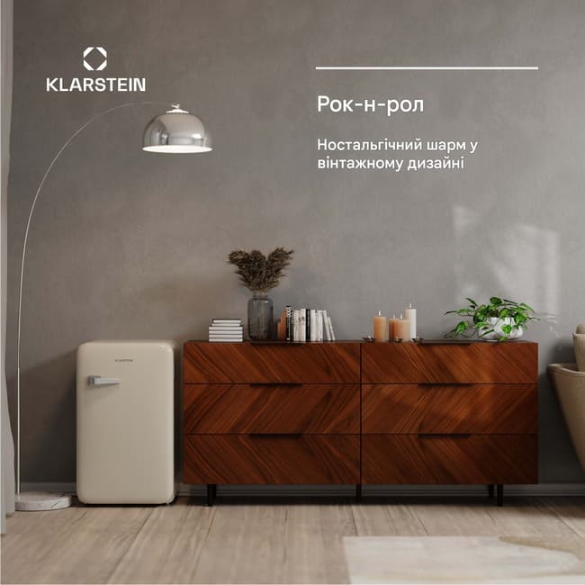Придбайте холодильник Klarstein Audrey Evo — компактний, тихий і стильний, який чудово підійде для будь-якого інтер’єру.