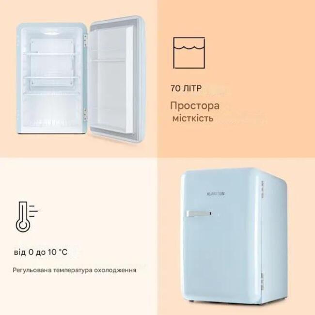 Свіжий і стильний: холодильник Klarstein Audrey — це освіжаюча подорож у минуле, у 1950-ті роки.