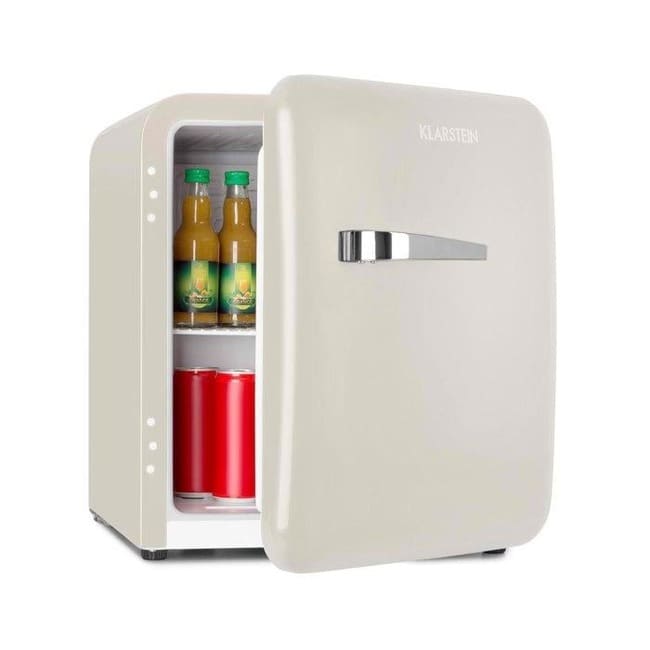 Міні -холодильник Klarstein Audrey випромінює барвистий ретро-вигляд! Навіть маючи найменший простір, ви можете скрасити своє життя прохолодними закусками чи напоями. Незвичайний міні-холодильник у стилі ретро зі своєю життєрадісною аурою надає теплого шарму кожній окремій та невеликій сімейній кухні, кімнаті для гостей чи будиночку. 48 літрів простору для зберігання забезпечують багато місця, а 2 рівні та 2 дверних відділення для пляшок, склянок і банок забезпечують порядок.