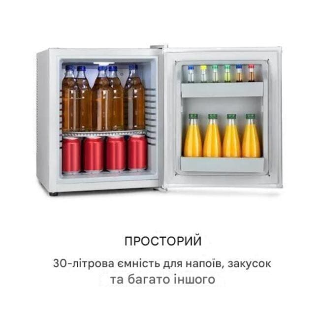 Міні-холодильник Klarstein Happy Hour компактний і майже нечутний завдяки найсучаснішій системі охолодження. Він легко вміщує напої та закуски та нагріває їх до приємної освіжаючої температури. Його просторий салон спокійно вбирає все. Міні-бар Klarstein Happy Hour може легко виконувати свої завдання охолодження там , де часто буває мало вільного місця: у готельних номерах, садовому сараї, дитячій чи підлітковій кімнаті або безпосередньо у підвалі домашньої вечірки. Бажану температуру охолодження можна вибрати від 5 до 15 °C за допомогою поворотного регулятора на задній панелі.