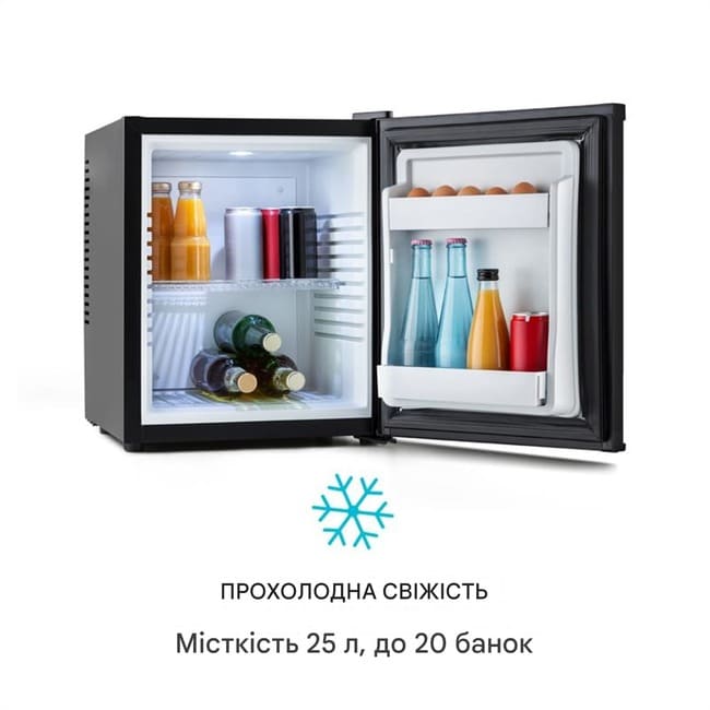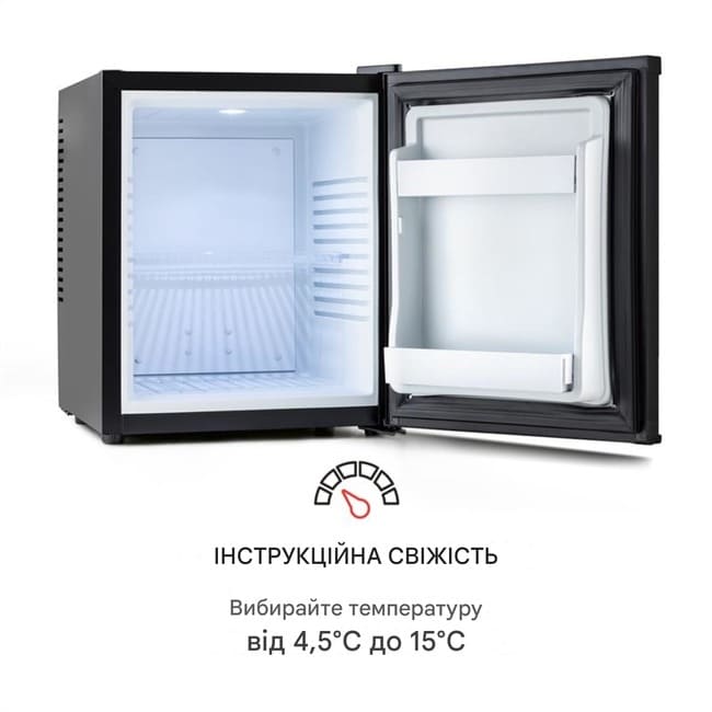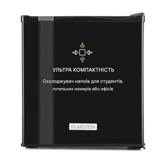 Міні-холодильник Klarstein Happy Hour компактний і майже нечутний завдяки найсучаснішій системі охолодження. Він легко вміщує напої та закуски та нагріває їх до приємної освіжаючої температури. Його просторий салон спокійно вбирає все. Міні-бар Klarstein Happy Hour може легко виконувати свої завдання охолодження там , де часто буває мало вільного місця: у готельних номерах, садовому сараї, дитячій чи підлітковій кімнаті або безпосередньо у підвалі домашньої вечірки. Бажану температуру охолодження можна вибрати від 5 до 15 °C за допомогою поворотного регулятора на задній панелі.