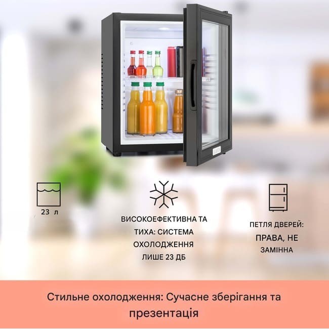 - Об'єм 24 л: надзвичайно компактний міні-холодильник