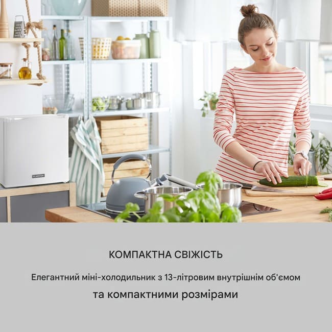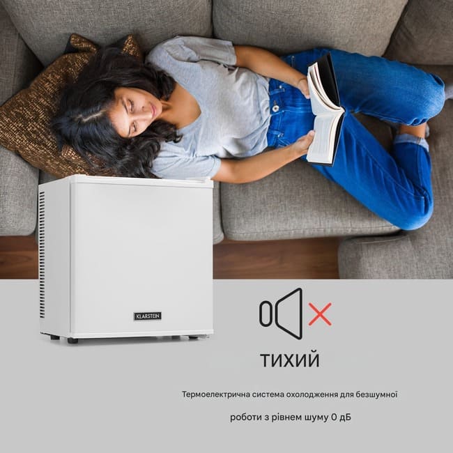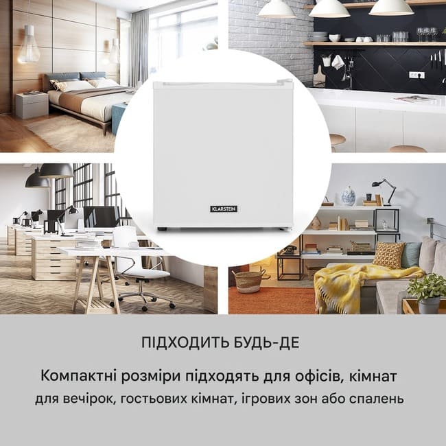 Компактне охолодження: Міні-холодильник Klarstein Secret Cool чудово охолоджує закуски, напої, ліки чи косметичні засоби. Його компактні розміри та майже безшумна робота роблять його ідеальним для садових сараїв, гостьових кімнат, кімнат для вечірок, офісів чи спалень.