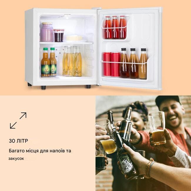 Об’єм 30 літрів дозволяє зручно розмістити напої, снеки або легкі продукти: