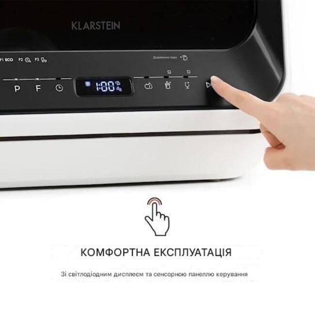 - Світлодіодний і сенсорний дисплей: простий у використанні