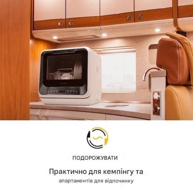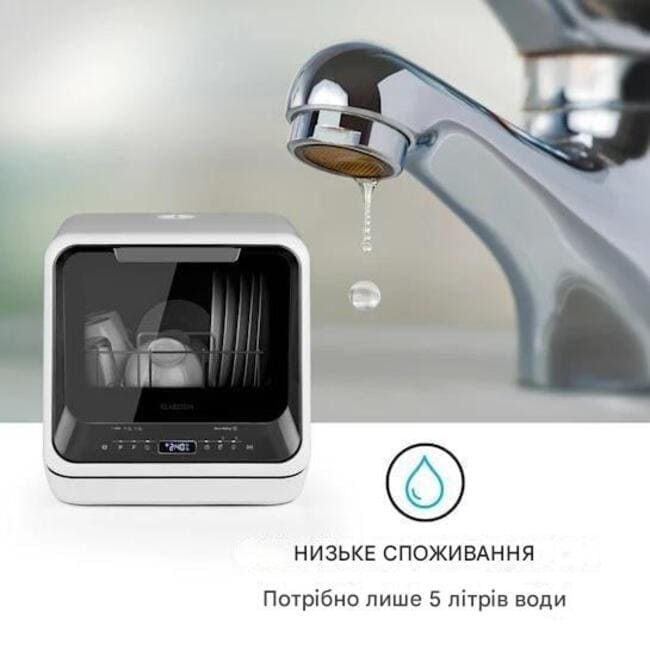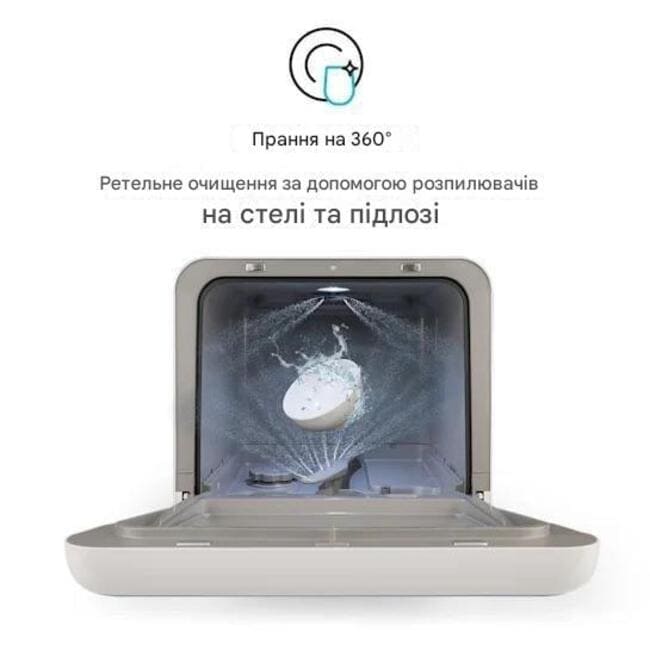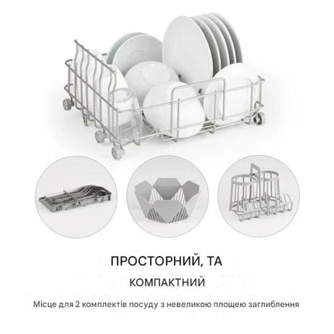 - Маленький і потужний: очищає до 2 комплектів посуду