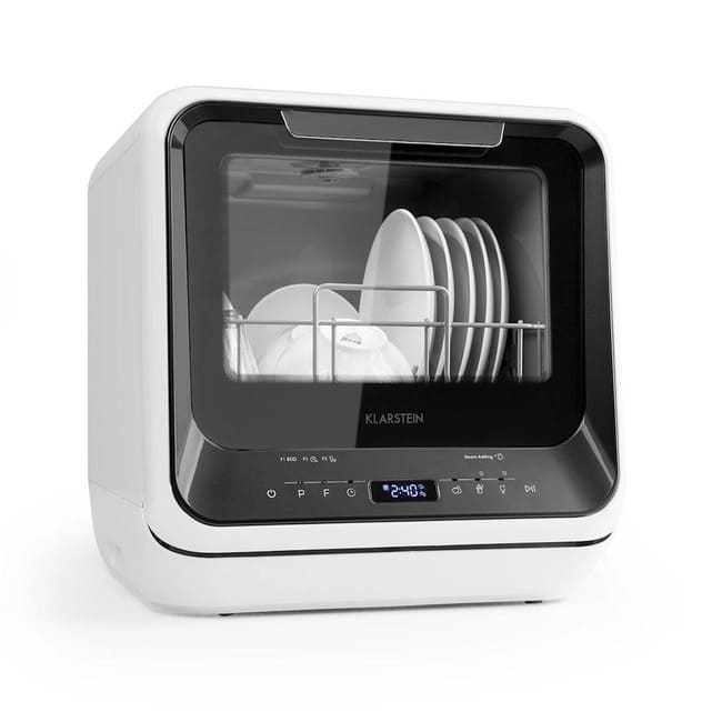 Міні-посудомийна машина Klarstein Amazonia є ідеальним засобом для миття посуду для окремої кухні, квартири для відпочинку чи кемпінгу ! У нього можна розмістити до двох комплектів посуду, і він миттєво знову виблискує чистотою до наступного прийому їжі. Ви можете легко та зручно вибирати між 6 ефективними програмами прання за допомогою світлодіодного дисплея.