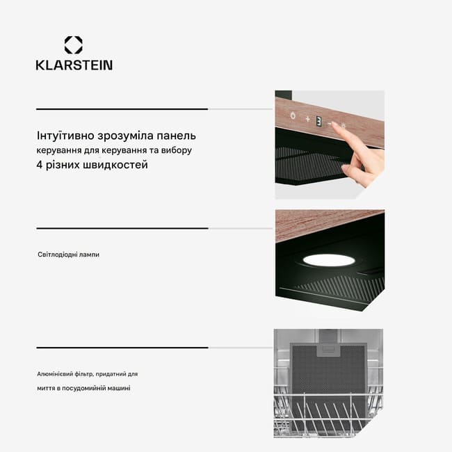 Вытяжка Klarstein ZenFusion T сочетает современный внешний вид, высокую производительность и продуманную эргономику для комфортной кухни. Натуральные оттенки и текстуры позволяют ей гармонично вписываться в интерьер и поддерживать чистоту воздуха.