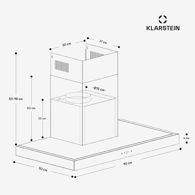 Кухонная вытяжка Klarstein ZenFusion T, вытяжка для кухни с рециркуляцией и мощная вытяжка 90 см гарантируют свежесть, комфорт и современный стиль.